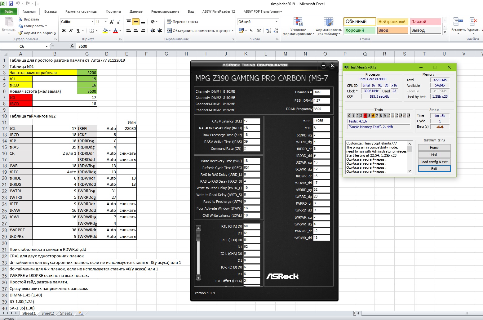 Универсальный гайд. 0. Устраните любые потенциальные проблемы с другим железом. Снимите разгон с видеокарты, снизьте частоту цп на 300 с сохранением напряжения. Не забудьте вернуть RTL в авто если сейчас не авто. 1. Крутим очень короткий мемтест, то есть если минуту живёт сразу снижать тайминг дальше. Ищите не стабильность, а явно сбойное значение тайминга, запишите его - пригодится. Гораздо проще найти явно нерабочее значение и от него плясать чем пытаться ловить нестабильность часами. Это также помогает диагностировать сбойные тайминги на ранее "стабильной памяти". Не пытайтесь найти предельные значение сразу. Сначала скрутите до +2 от минимально стабильного. Многие тайминги идут параллельно поэтому бессмысленно пытаться скрутить до упора с первого прохода. CR выставить на 2 если стоит 1. В самом конце можно попробовать скинуть до 1. 3 Ставить только на очень большую частоту или если по другому ну совсем никак.
