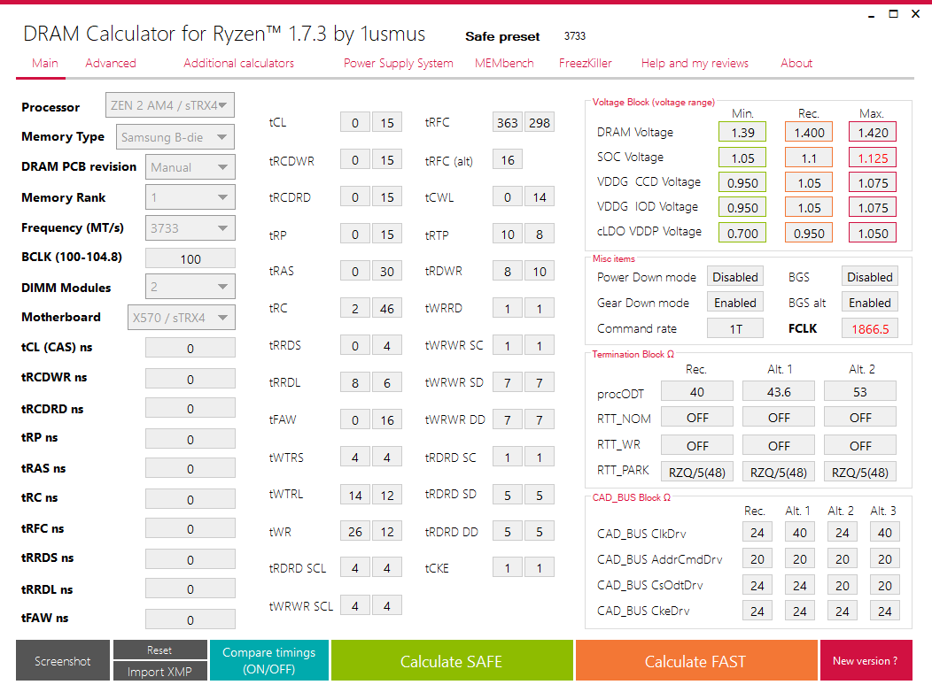 Ставьте Samsung OEM в настройках калькулятора, потому что у вас не B-die и не может быть им (3200с16)