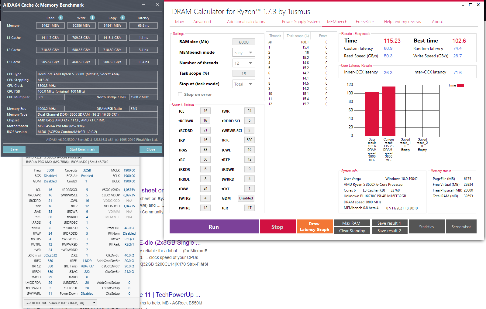 Господа подскажите какие настройки подкрутить, ситуация следующая, установил 3700х (мать и озу в подписи) обновил биос соотвественно, вбил настройки как при 1700 было, но озу стабильная только при стоковых 2666 а работала на 3000, на данный момент вроде как удалось взять 2800 при повышении таймингов, не могу сообразить что и в какую сторону подкрутить что бы вернуть хотя бы 3000, сразу скажу по каклькулятор читал ещё 3 года назад, для моей озу он несуразицу выдаёт, потому как напрягу макс 1.380, а она даже при 2933 ниже чем 1.435 не работает стабильно, подскажите что нить ))
