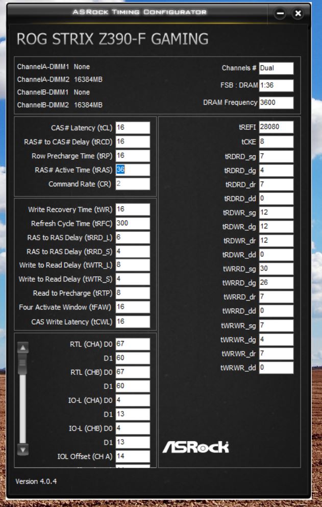 Начните с RCD, CL. Не обязательно должны быть одинаковыми, обычно CL идёт меньше чем RCD. RAS сразу пробуйте как RCD+CL+4, до этого значения от него существенная разница, дальше меньше. CWL<=CL. Допустимые значения 9,10,11,12,14,16,18,20. RP можете выставить по RCD, если пойдёт меньше - тоже неплохо, не уверен правда насчёт смысла. RTP без формул. Если не идёт вниз можно попробовать поднять чуть чуть RP. В DDR4 явно связан с WR соотношением 2 к 1 (например WR20\RTP10), физически хранится одно значения и в зависимости от операции интерпретируется. Скрутите FAW до 16(так и оставьте если работает). С таким FAW скручивайте RRD(оба, L обычно больше чем S), возможно поедут на 4 оба. Если до 4 не удалось спустить поднимите FAW до уровня RRDL*4 и попробуйте ещё, хотя это скорее всего уже почти предел. Обычно L>=S. L - SG(Same Group). S - DG(Different Group) Напр. RRD_L>=RRD_S. CKE=5 СCDL>=4 RDRD_DD и прочие подобные можно проигнорировать если у вас нет двух планок на один канал (4 планки). DD-Different Dimm. Тоже самое с DR-Different Rank если у вас одноранговая память. RDWR_SG(DG) и подобные сочетания скручивайте до минимальных рабочих, потом накиньте сверху +2. Как уже отметил обычно SG>=DG. WTR не трогайте он сам спустится когда будете скидывать WRRD_SG(DG) и прочие подобные. Если сам меньше не стал тогда руками скидывать. WR снижать через WRPRE если есть. Если нет или не снижает WR, То скрутите его скажем до 12 или +4 от рабочего, потом дожмёте если не лень будет. RFC явных формул нет, крутить после всего списка сверху. Не пытайтесь найти его минимальное значение если не хотите чтобы память начинала сыпать ошибками от любого чиха. найдите пограничное со стабильностью значение и накиньте сверху 20 или сразу 40. Может реагировать на RAS+RP, RRD, FAW, причём в обе стороны (то есть может "сломаться" если задрать названные), а может и не реагировать... REFi больше лучше. Связан с RFC. REFI сколько память "работает" - RFC сколько "отдыхает". Оба тайминга лучше не пытаться найти предельное значение.Заметно реагируют на температуру. Многие тайминги отзываются и на температуру и на напряжение. Поскольку напряжение может как позволить снизить тайминг, так и увеличить температуру, то середину можно искать очень долго, поэтому лучше бы вовремя остановится. Тестируйте тщательно с перезагрузками, сном, холодным стартом. RTL и IOL вам кто-то другой пусть советует как настраивать, от них у меня голова болеть начинает...