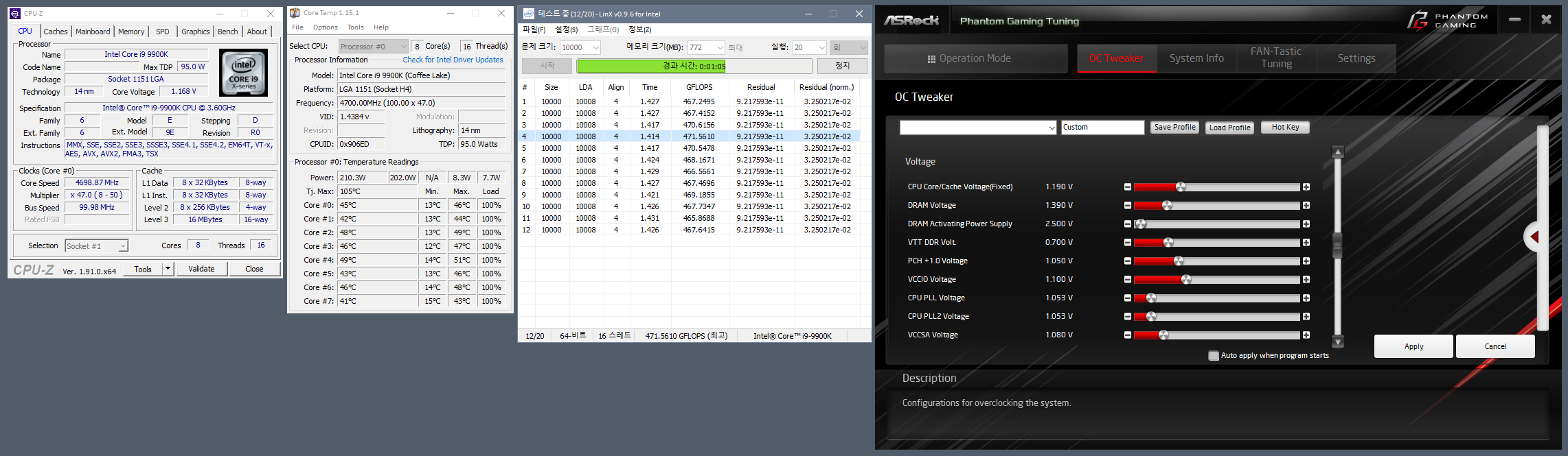 Для понижения температуры попробуй следующие шаги: 0. оставь всё на максимумах, как было. Выключи все приложения на заднем плане. HWiNFO используют CPU и снижают тем самым значение в Линпак. 1. понижай Vcore с шагом 5-10 mV и гони Линпак на 10 GB (5 циклов достаточно). 2. если тест проходит, см. шаг 1. Прогоняй линпак то того, пока не вылетит синий экран (с или без ребута) или просто зависнит система или же просто ребут, без синиго экрана. 3. нашёл ту границу, где система, сразу после начала решения линпак (не инициализации) вылетит - хорошо. Это твоё минимально допустимое значение VCore. Дальше см. шаг 4. 4. подними VCore сразу на +15 mV, этого должно быть достаточно для полного прохождения 5 циклов линпака.