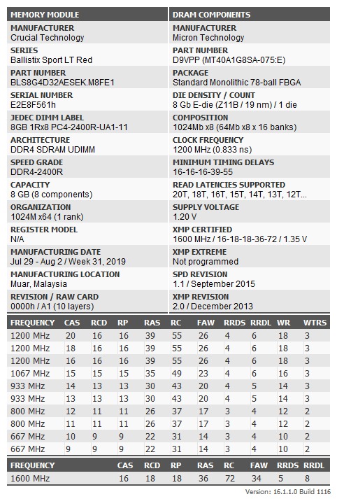 gungstar, Гаврик - совсем не профи в нюансах, а простой обозреватель, с ним я не согласен. Crucial продолжает допускать ошибки в маркировке модулей памяти. Например, М в BLS8G4D32AESCK.M8FE говорит о микросхемах с оригинальной маркировкой Micron, в то время, как под радиаторами микросхемы с маркировкой CPG. В этом случае маркировка модуля должна быть BLS8G4D32AESCK.С8FE, как это было раньше. Вот если будет C, тогда тайфун возможно и будет отображать C9BJZ, а пока пусть остаётся D9VPP.