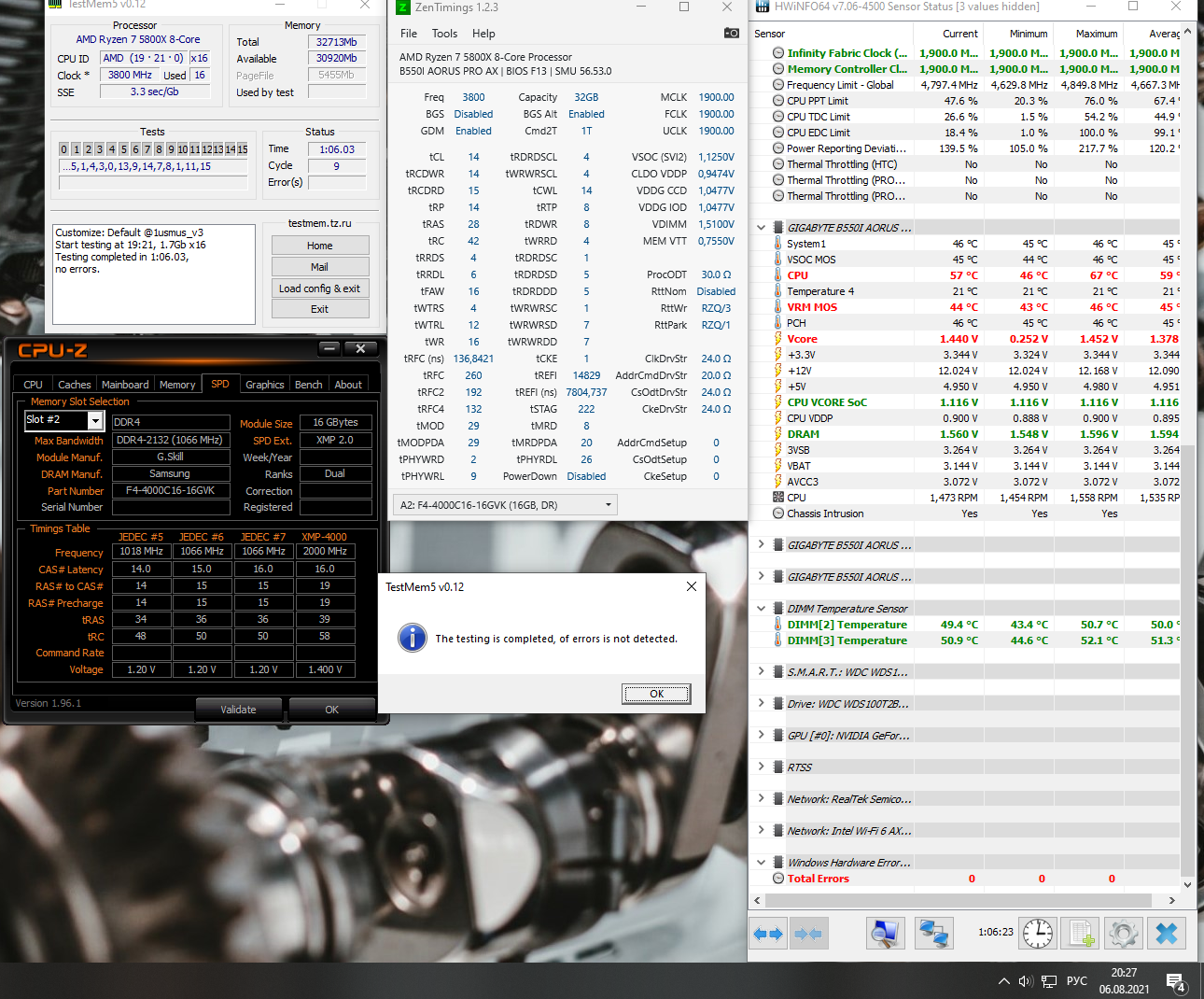 4. Перед настройкой частоты и таймингов рекомендуется установить принудительное охлаждения на модули памяти, особенно для памяти с чипами Samsung B-die, повышение температуры памяти выше 48°, может сопровождаться дополнительными ошибками, не связанными с неправильной настройкой таймингов, что затруднит их поиск и общую настройку памяти.