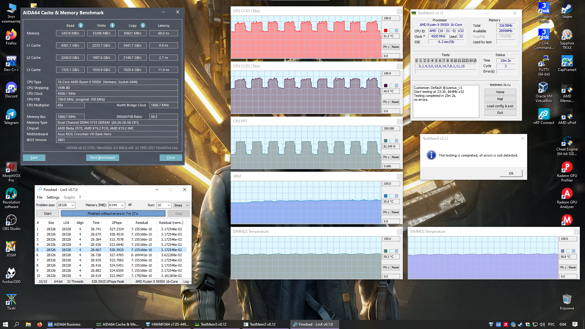 Дальше думаю подкрутить tRRDL, потом попробовать снизить VSOC и VDDG CCD/IOD и потестить получше и более разнообразно