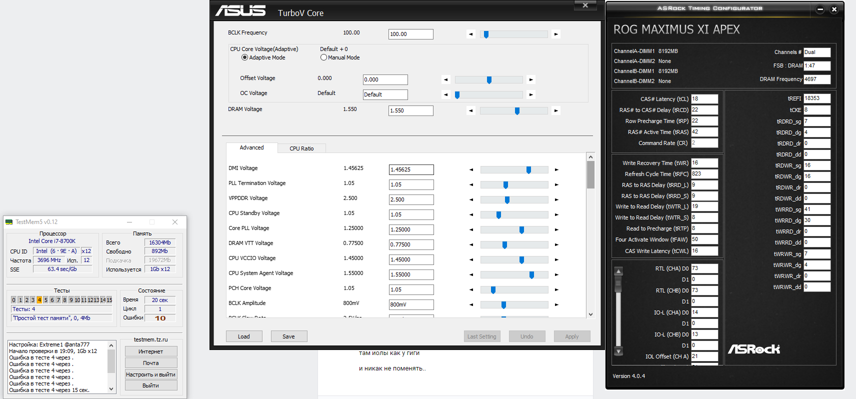 Напряжения на процессоре при разгоне памяти