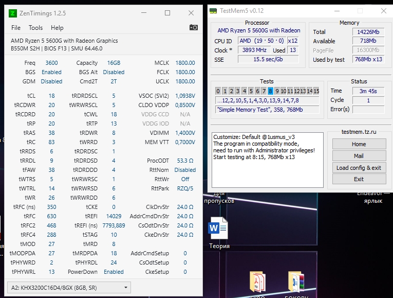 Всем привет. Имею следующий конфиг 5600g Материнская плата GIGABYTE B550M S2H с последним биосом f13 KINGSTON HyperX FURY HX432C16FB3K2/16 DDR4(производитель dram sk hynix) Vega 7 Экспериментировал долго. Заводится на частоте 3600 и 3800 на таймингах 16-22-22-42 при напряжении 1.4, fclk 1800 Проходит стрес тесты в аида и осст, но в играх спустя какое то время черный экран и только через перезагрузку. Игрался с таймингами и напряжением картина не меняется. Прошу разбирающихся людей помочь советом в какую сторону копать.