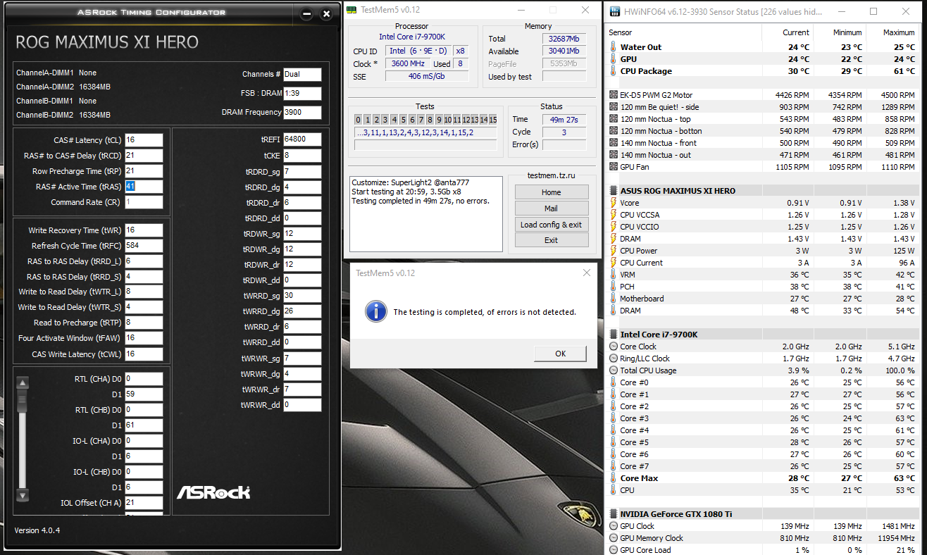 Решил скинуть до 3500,причем странно 3600 заводилась при тех же таймингах,и ошибок не было(правда тестил макс 1 ч).а сейчас через раз заводиться,видно тайминги те что на авто стоят,мозг делают. Я руками выставлял 16-19-19-30-470-1Т