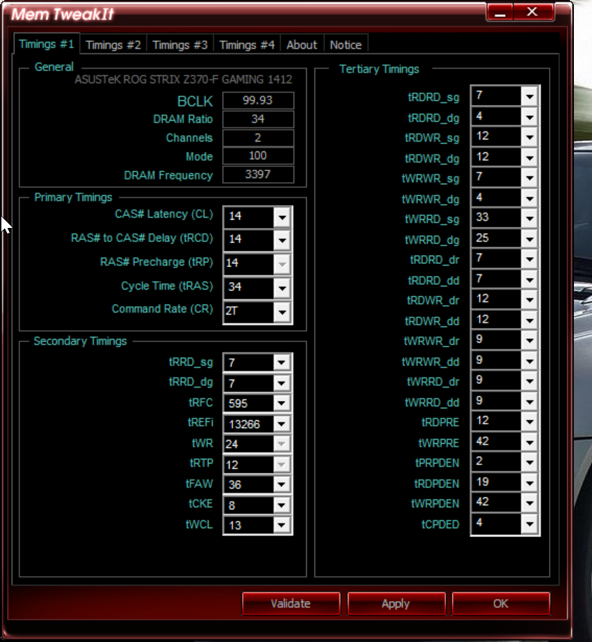 TestMem5 не говорит о 100% стабильности, проверяю дотой - вылетает, значит память не стабильна! В других играх редко вылетает. И не надо говорить что дота сама вылетает, на пониженной частоте она никогда не вылетает. DRAM Calculator for Ryzen™ 1.4.0.1 - дичь полнейшая, ставлю по нему - результат в аиде бенч хуже, чем пресеты от MSI. Двухранговая память. Не могу добиться стабильности на частоте 3200Mhz. Тайминги 18 18 18 38 74. Напряжение 1.38-1.39 ставлю. Тесты проходит, лара крофт играет себе спокойно, а вот в доте оч часто вылетает, за игру раз 5. Подскажите какие тайминги попробовать? P.S. проц amd ryzen 2200g мать MSI B450M Pro-Vdh память DIMM3: Samsung M378A1G43EB1-CRC 2х8Gb