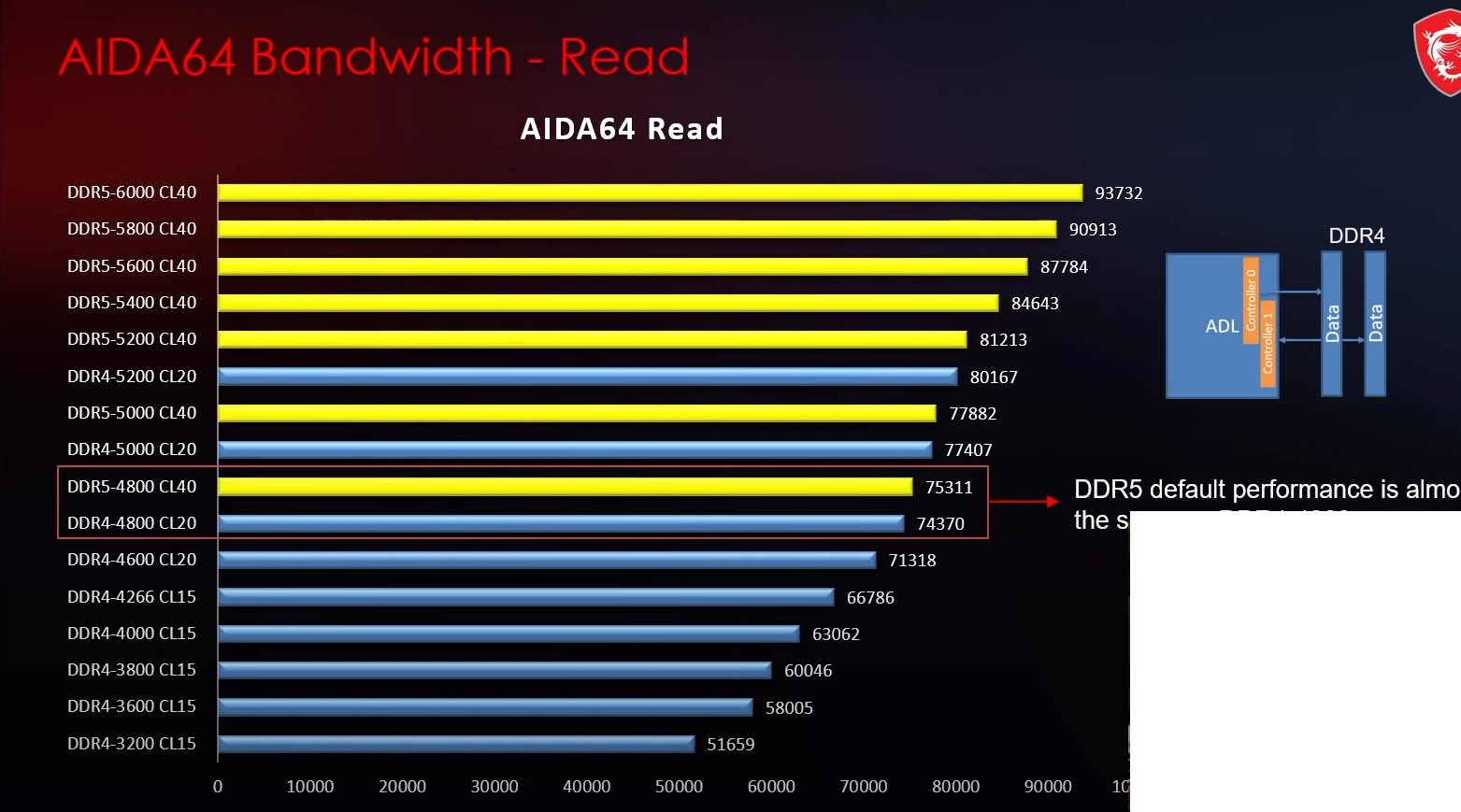 Добавлено спустя 3 часа 29 минут 12 секунд: Сравнение пропускной способности ддр4 и ддр5 на одинаковых частотах. Прошу обратить внимание на окно где ддр4 будет иметь не только выше пропускную но и меньше задержку а значит ниже этой частоты просто бессмысленное сравнение ддр5 из ддр4. последняя при грамотной настройке выиграет во всех сценариях