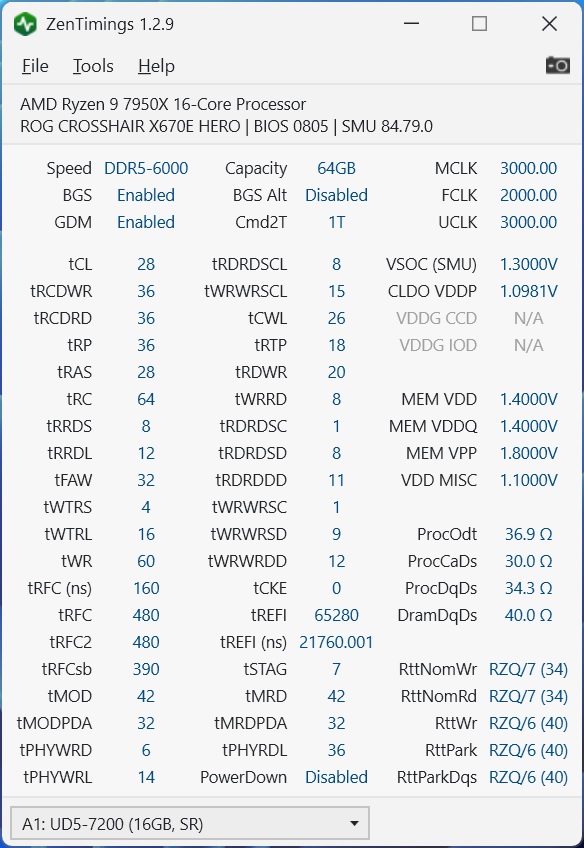 X670E Hero, 0805 7950X, 16x4 TeamGroup 7200, стабильно завелась только на 6000. На 6200 (FCLK 2066) и 6400 (FCLK 2133) стартует, но в Tm5 сыпет ошибками, после чего уходит в блюскрин даже с 50+ таймингами, которые материнка ставит по дефолту, даже в MEMCLK/2 режиме (т.е. проц не ходит по FCLK выше 2000). На 6000 пробовал 28-34, но не взлетело, сыпет ошибками, на 28-36 пока остановился. Подскажите куда дальше двигаться? Поигравшись с напряжениями пытаться в 34 на tRCD или вторички на том что есть жать?