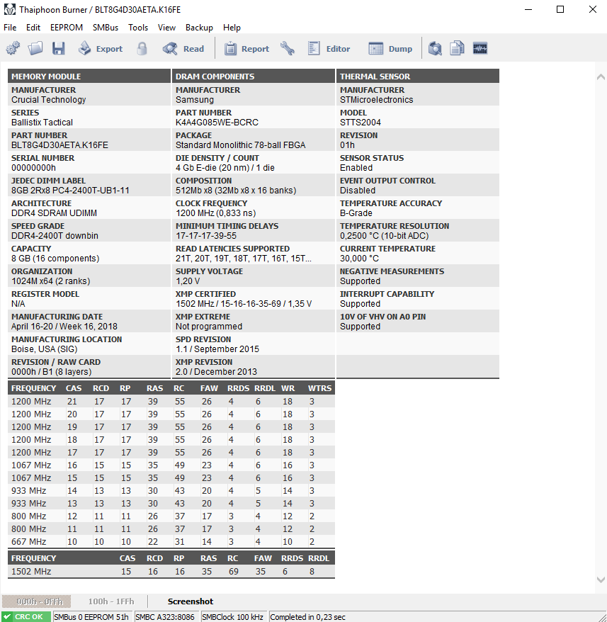Посмотрите по ссылке, у Crucial оказывается есть модули BLT4G4D30AETA.K8FD DDR4-3000 на SEC D-die Откуда только они эти микросхемы выгребли. Причём модули изготовлены в начале 2018 года.