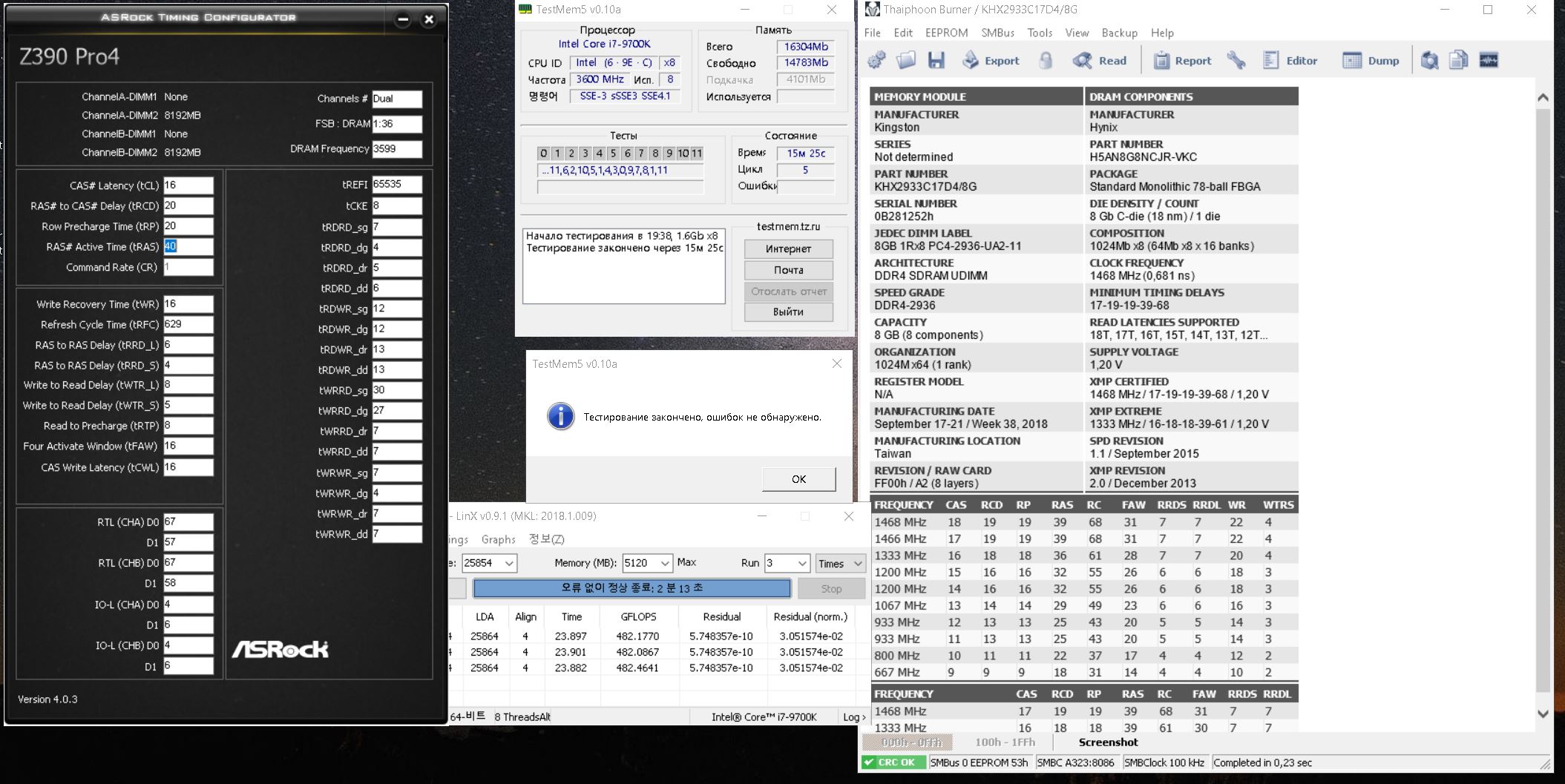я может немного не в теме. Но на моем 9700к наименьшие значения, гораздо меньше. Хотя сам камень очень любит вольтаж, у меня чтоб пройти линкс при 4700 нужно давать вольтаж под 1.4V Покажу только то что у меня было. 3600 15-19-19-36-1 sa/io 1,2 (не уменьшал, может быть было бы и меньше) dram 1,34 экстрим и лайт проходит. 3733 16-20-20-38-1 sa/io 1,2 dram 1,37 экстрим и лайт проходит. 4000 16-22-22-42-1 sa/io 1,21 dram 1,44 экстрим и лайт проходит.