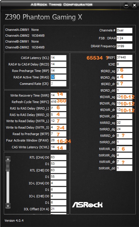 Здравствуйте, подскажите, пожалуйста, какие значения и куда подставить, и что понижать для улучшения в блоке RTL? Я понимаю, что есть формулы, но по формуле и моему биосу не очень понятно что есть что. Конфиг: msi z390-a pro, 9600kf #77