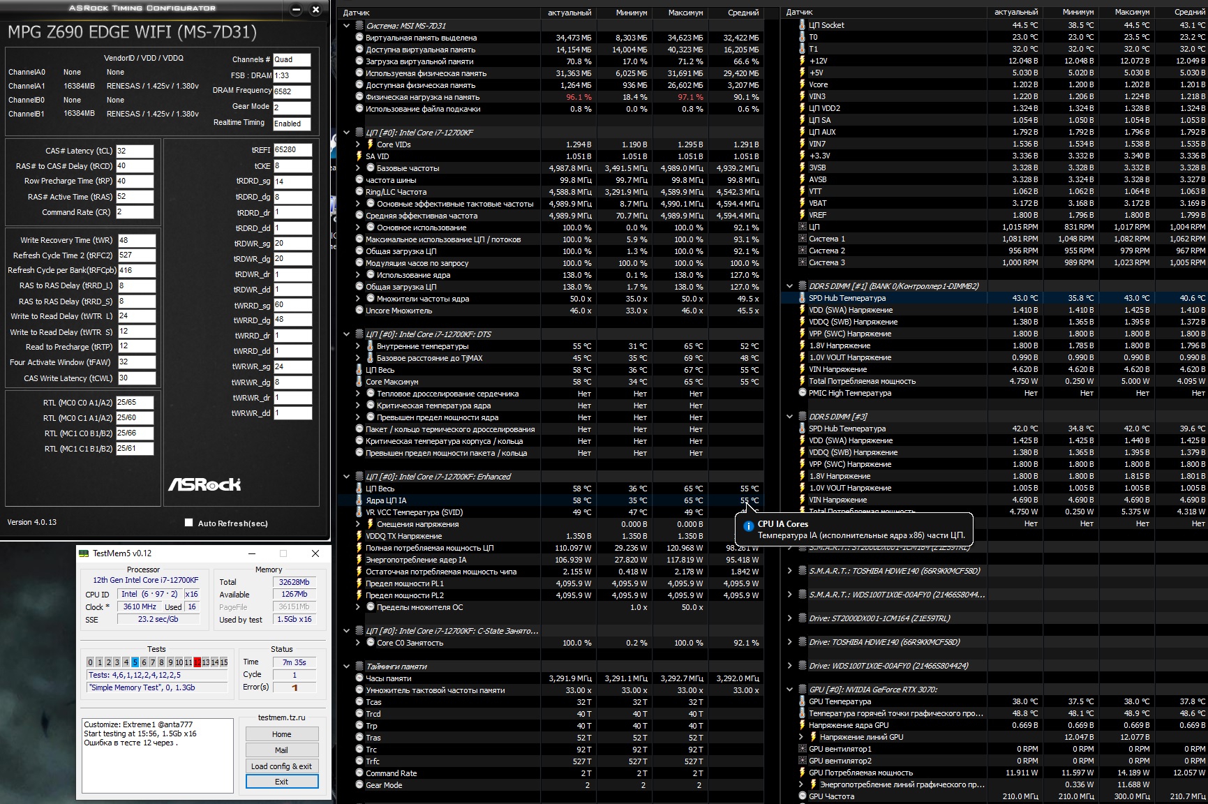 garison87 КРивые WTRL S стоят. Вы какието экстремально низкие значения используете, я на воде на 1.65 не позволяю себе ниже 12/24 уйти край 10-20 у тебя 8 стоит TRFC2 и TRFCPB почему ты одинаковые ставишь лол? А так у тебя тупо нагрев вон видно 47 градусов, скорее всего нагревается память и вылазит ошибка. Вот и все, улучшай охлад или ставь нормальные напряжения. Я на ГОЛЫХ ОЕМ хуникс без обдува ставил 1.5 на дуал ранге 64 гига и они работали изи 6400.