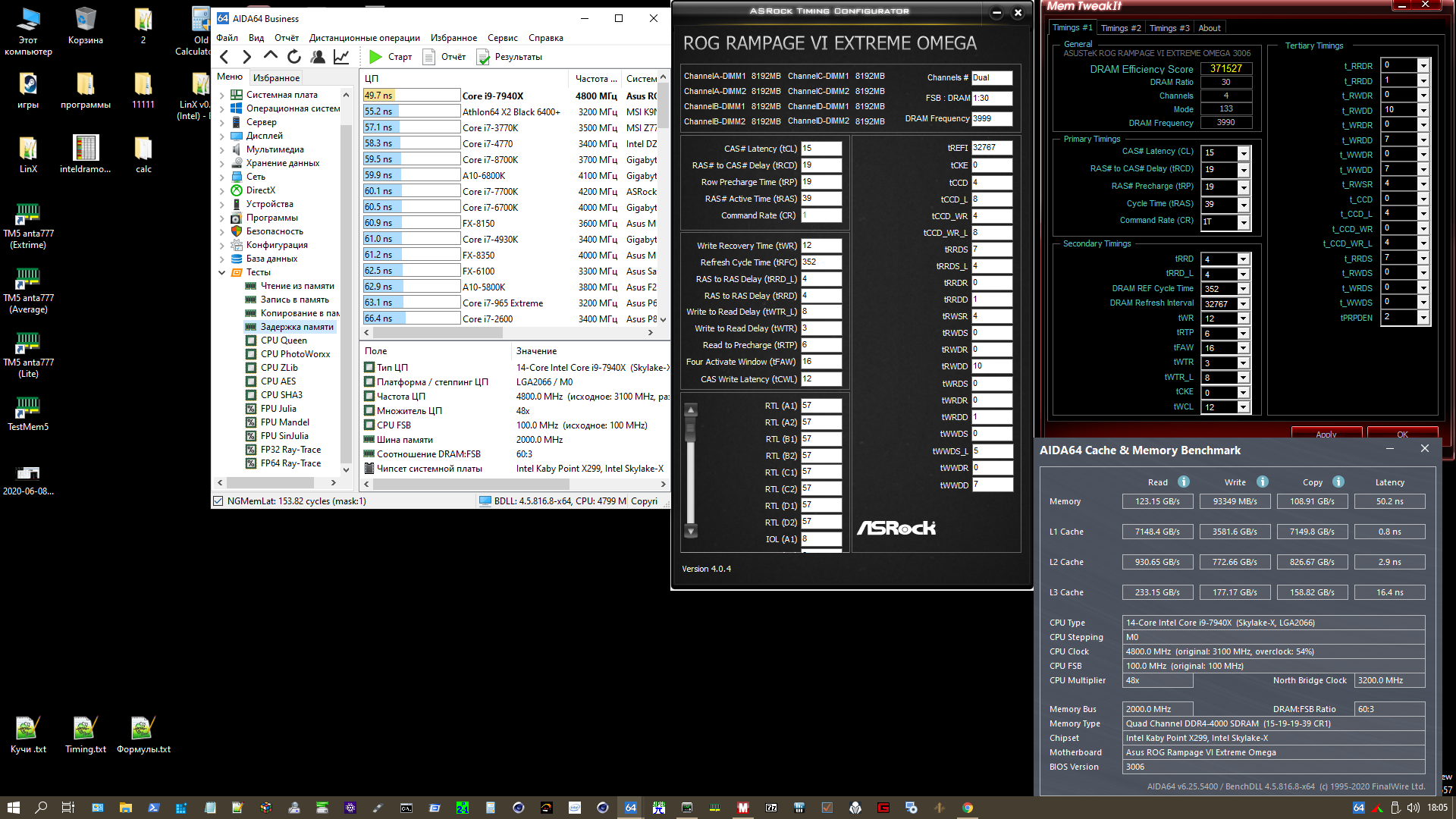 Разгон памяти у современной DDR4 (16 банков,RRDS=4,FAW=16,BL=8) эффективен только при tRC<=64,если каждый новый блок чтения происходит с разных банков памяти. Для 4-х слотовых плат при разгоне желательно в биосе отключить неиспользуемые слоты. Для максимальной производительности памяти значение tRFC в тактах для 8-Гбитных чипов должно быть кратно 8,а для 16-Гбитных чипов - 16. Если это правило не соблюдать, то будут вставлены лишние такты при каждом цикле обновления памяти. Для желающих максимально снизить tRFC. Делим tRFC на сумму tRCD,tRTP и tRP. Если результат ближе к 4, то снижать tRFC можно по 4 такта. Если результат ближе к 2, то снижать tRFC можно по 2 такта. Это связано с тем, что обновление происходит субмассивами, которые обязательно кратны 2.