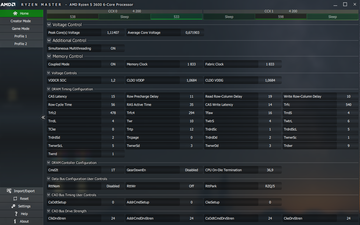 Частота и тайминги Основные показатели скорости памяти. Чем выше частота памяти, тем лучше. Однако гнаться за частотой во вред таймингам не имеет смысла (и наоборот). Выбор частоты на DDR4 возможен от 2133 до 5333 Мгц. Частоты выше 4400 Мгц доступны как правило только на определённых оверклокерских платах и с отборными модулями (а также с хорошим контроллер памяти процессора, который сможет подобное). Хорошей частотой в разгоне является 4000-4400 CL17 и ниже, выше уже могут выше только отборные модули. Для платформы AM4 частота оперативной памяти особенно важна, т.к. к ней привязана внутренняя шина передачи данных Infinity Fabric (работающая на половине частоты оперативной памяти). Дело в том, что эти многоядерные процессоры состоят из двух модулей по несколько ядер, которые взаимодействуют между собой через шину под названием Infinity Fabric – а она тем эффективнее, чем быстрее у вас ОЗУ. Частота влияет в первую очередь, но это не единственный фактор. В связи с этим очень желательны модули, которые в разгоне могут достичь хотя бы частоты 3200, при этом частота Infinity Fabric будет уже вполне удовлетворять потребности процессора. Частоты выше также растят производительность, но требуют бОльшие вольтажи, лучших материнских плат и отбора памяти. Прирост от 3200CL14 -> 3466CL14 есть, но как правило настолько затратный по времени, что не покрывает затрат на его достижение. Хотя сейчас, ситуация лучше и уже многие Hynix\Micron могут взять 3200\3333 на AM4, B-die уверенно работает на 3600-3800. Одинаковая память на более низких таймингах (при одной частоте) будет эффективнее. Т.е. 3200 CL14 > 3200 CL16, как пример. При правильной настройке вторичных и третичных таймингов, можно «добрать» еще до 45% производительности в синтетике и до 25% в играх. Таблицу задержек в наносекундах можно посмотреть тут.
