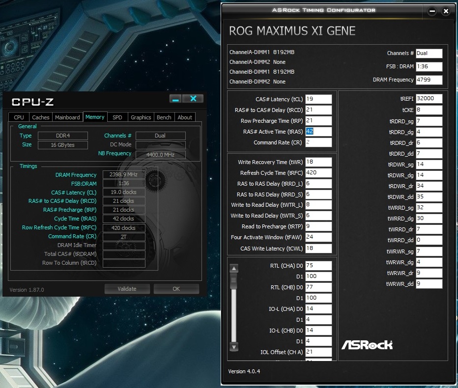 Разгон памяти у современной DDR4 (16 банков,RRDS=4,FAW=16,BL=8) эффективен только при tRC<=64,если каждый новый блок чтения происходит с разных банков памяти. Для 4-х слотовых плат при разгоне желательно в биосе отключить неиспользуемые слоты. Для максимальной производительности памяти значение tRFC в тактах для 8-Гбитных чипов должно быть кратно 8,а для 16-Гбитных чипов - 16. Если это правило не соблюдать, то будут вставлены лишние такты при каждом цикле обновления памяти. Для желающих максимально снизить tRFC. Делим tRFC на сумму tRCD,tRTP и tRP. Если результат ближе к 4, то снижать tRFC можно по 4 такта. Если результат ближе к 2, то снижать tRFC можно по 2 такта. Это связано с тем, что обновление происходит субмассивами, которые обязательно кратны 2.
