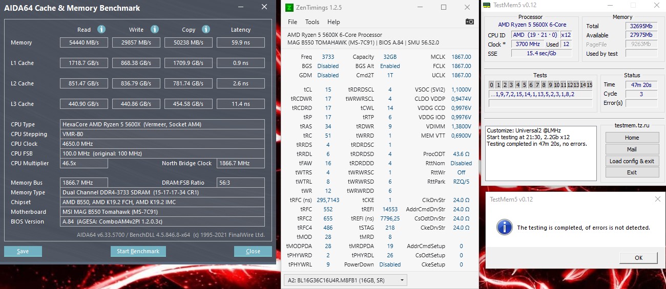 4. Перед настройкой частоты и таймингов рекомендуется установить принудительное охлаждения на модули памяти, особенно для памяти с чипами Samsung B-die, повышение температуры памяти выше 48°, может сопровождаться дополнительными ошибками, не связанными с неправильной настройкой таймингов, что затруднит их поиск и общую настройку памяти.