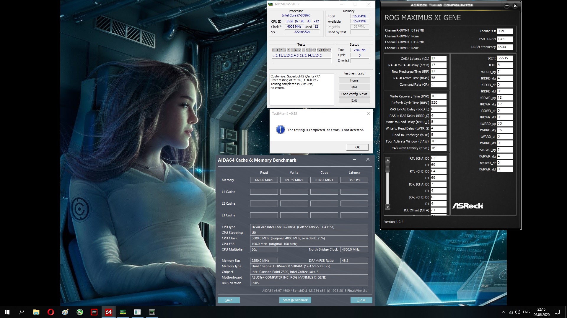 Доброе утро, Я на днях апнул систему, Z390 asus strix gaming F, 1151 HyperX Predator RGB 2*8, (HX436C17PB4AK2/16) Разгон начал, 17.19.19.39, 2т. взял 3800 на 1.35 (хотя биос пишет 1.33) (отскок от максимального профиля) Дпалее решили оптимизировать тайминг, 17.18.18.36 2т. Вопрос в методике тестирования? Аида64? Мемтест5? Мемтест86 я хз что он тестирует, он в описании модуля показывает тайминг 17.19.19.39 2т, хотя я в Биосе изменил. Дайте советы чем тестить лучше всего на данный 2020 год. Судя по Аида чипы самсунга в этой версии, пишу с работы, так что досконально инфу по чипам дать не могу.