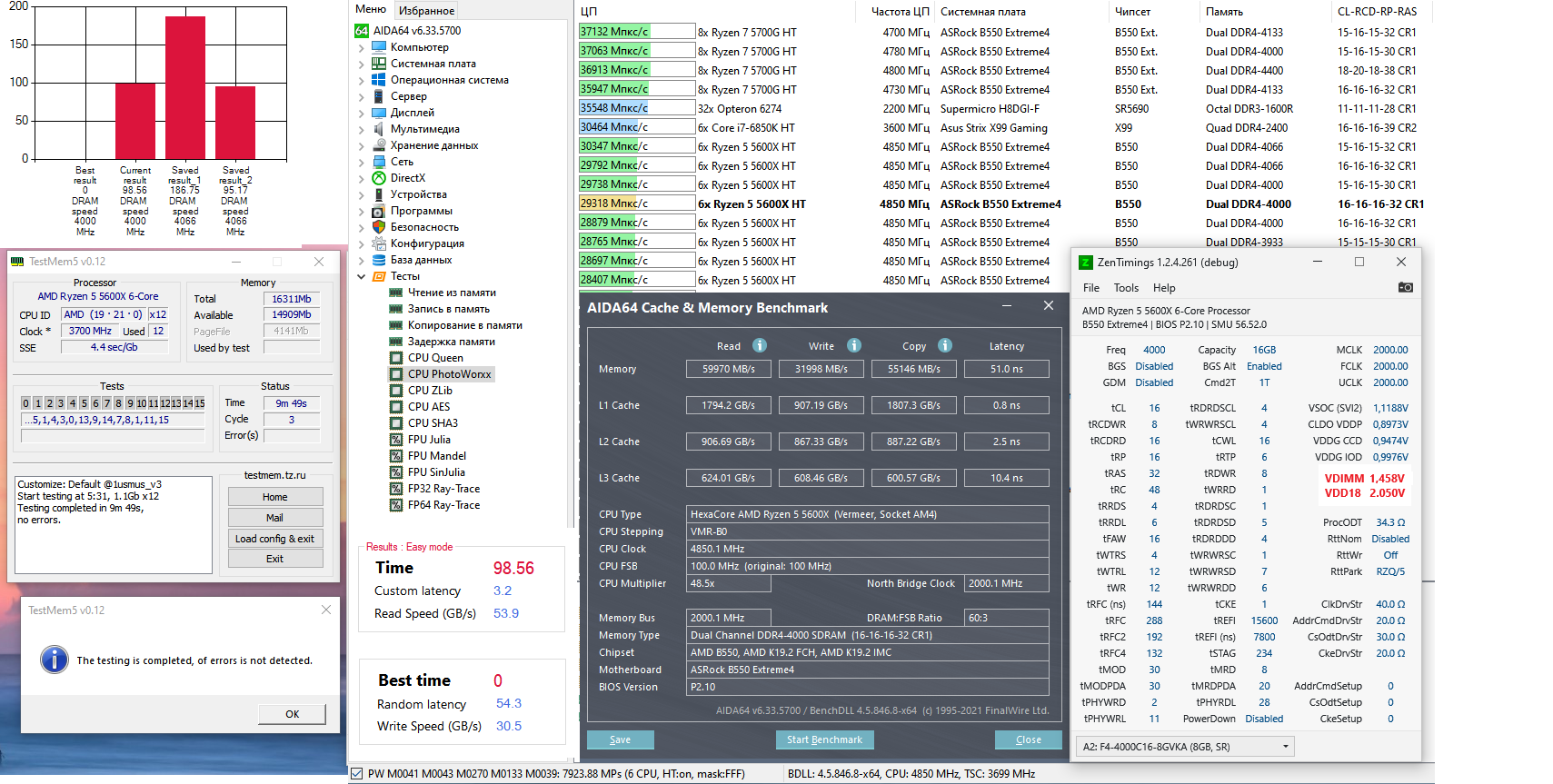 ... ну и планки, собственно, соответствуют упаковке (да и цене, вообщем то - несколько наивно было с моей стороны за 10к ожидать чего-то сильно приличнее моих HOF-ов) Никаких 1.4V на 4000СL16 ясен пень, там и близко нет. Может на интеле если (в амд-шном QVL их нет) Решил денек дома погонять, на 5600Х, ну и думаю щас XMP, и дальше посмотрим. На XMP завелась без проблем, правда вторички стояли со старого профиля, поэтому чтобы хоть 3 цикла 1usmusa пройти - нужно 1.458V c поджатыми вторичками.