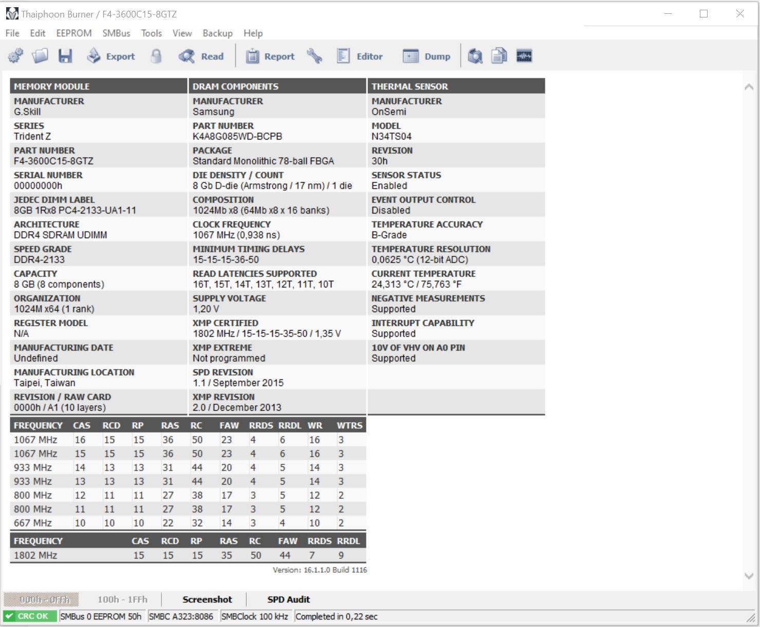 Доброго времени суток. Взял сегодня китовый набор A-Data Gammix D10 2x8GB 3000MHz толком не тестировал, по отзывам должен быть 2-х ранговый Samsung B-Die. По факту, прогнал Thaiphoon Burner 16.3.0.0 b0320, и обе плашки оказались одноранговыми, НО! на разных чипах О_о. Одна - Samsung B-Die, вторая - Hynix C-Die. Проверил ещё в AIDA64 и CPU-Z. Что это за приколы? Сдавать или ошибка идентификации? P.S. Вот дампы с обоих планок.