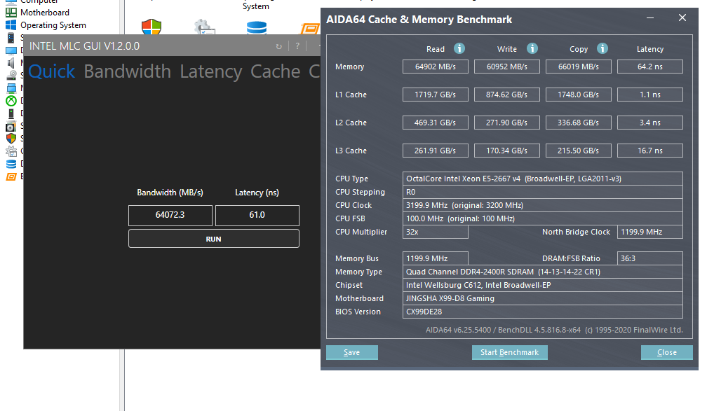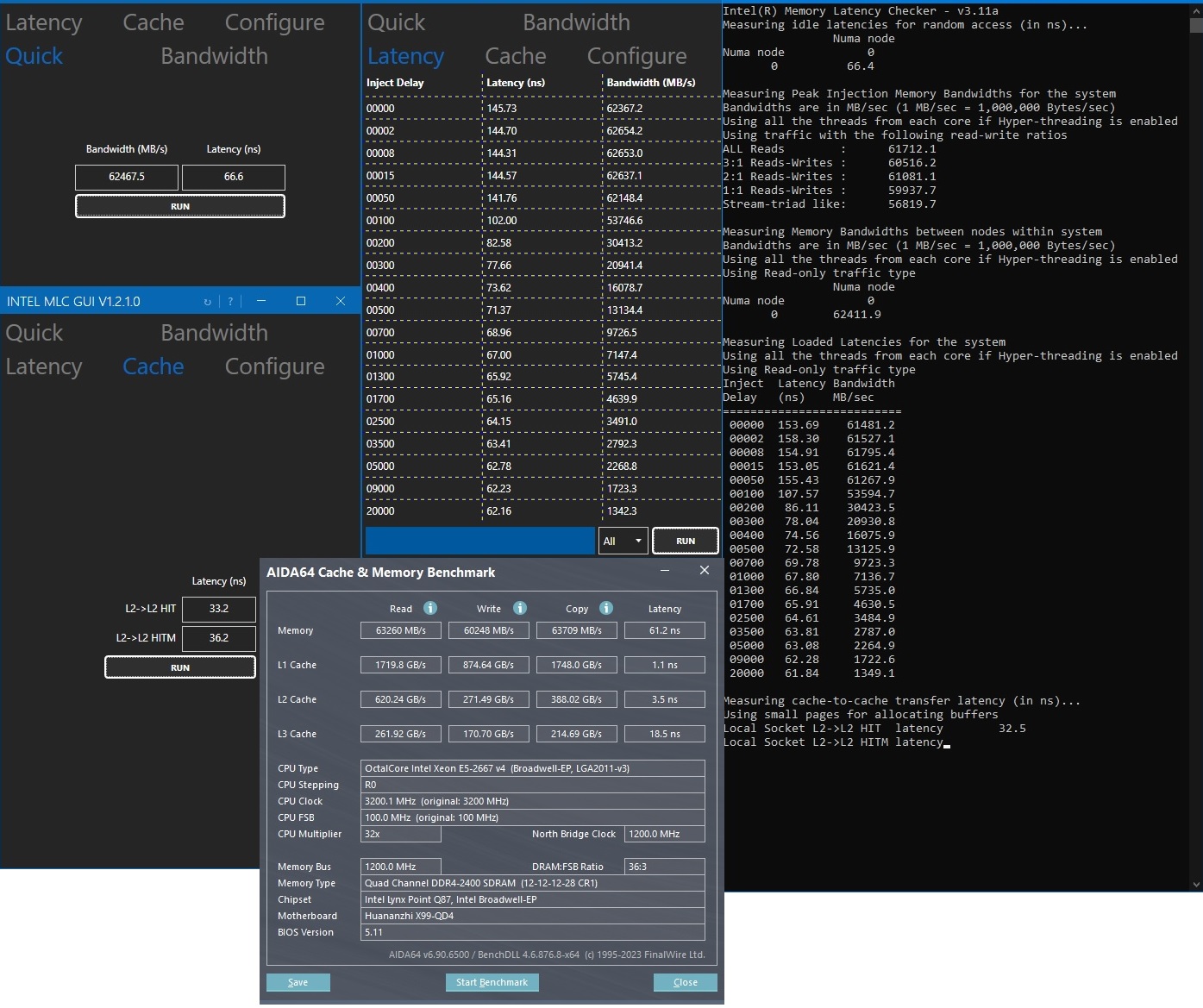 В IMLC у меня резалты разнятся от раза к разу. И печальнее, чем показывает в AIDA64 (latency в IMLC "прыгает" от 63 до 66+ ns, AIDA64 ~61ns)