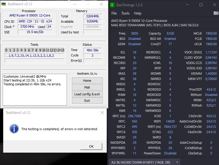 samsuung У вас всего лишь 7 неправильных таймингов, но в их числе и главные. Вы хоть tm5 с конфигом универсал с такими настройками без ошибок проходите?
