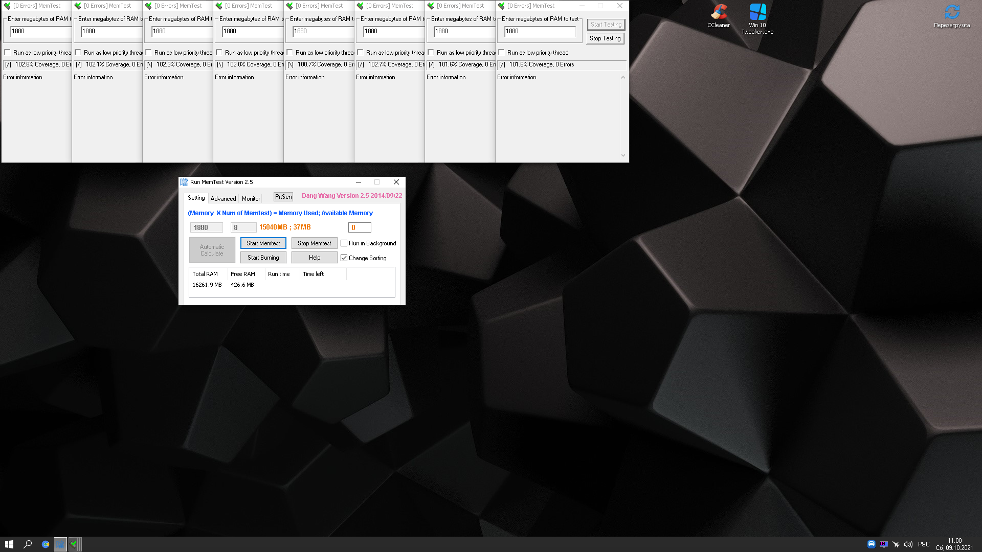 7. При желании протестировать память избыточным тестом в TM5 с конфигом 1usmus_v3 меняем количество 3-х циклов в "mt.cfg", "cycles=3" скажем на 8 или более