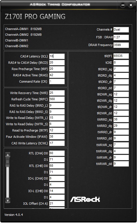 Начните с RCD, CL. Не обязательно должны быть одинаковыми, обычно CL идёт меньше чем RCD. RAS сразу пробуйте как RCD+CL+4, до этого значения от него существенная разница, дальше меньше. CWL<=CL. Допустимые значения 9,10,11,12,14,16,18,20. RP можете выставить по RCD, если пойдёт меньше - тоже неплохо, не уверен правда насчёт смысла. RTP без формул. Если не идёт вниз можно попробовать поднять чуть чуть RP. В DDR4 явно связан с WR соотношением 2 к 1 (например WR20\RTP10), физически хранится одно значения и в зависимости от операции интерпретируется. Скрутите FAW до 16(так и оставьте если работает). С таким FAW скручивайте RRD(оба, L обычно больше чем S), возможно поедут на 4 оба. Если до 4 не удалось спустить поднимите FAW до уровня RRDL*4 и попробуйте ещё, хотя это скорее всего уже почти предел. Обычно L>=S. L - SG(Same Group). S - DG(Different Group) Напр. RRD_L>=RRD_S. CKE=5 СCDL>=4 RDRD_DD и прочие подобные можно проигнорировать если у вас нет двух планок на один канал (4 планки). DD-Different Dimm. Тоже самое с DR-Different Rank если у вас одноранговая память. RDWR_SG(DG) и подобные сочетания скручивайте до минимальных рабочих, потом накиньте сверху +2. Как уже отметил обычно SG>=DG. WTR не трогайте он сам спустится когда будете скидывать WRRD_SG(DG) и прочие подобные. Если сам меньше не стал тогда руками скидывать. WR снижать через WRPRE если есть. Если нет или не снижает WR, То скрутите его скажем до 12 или +4 от рабочего, потом дожмёте если не лень будет. RFC явных формул нет, крутить после всего списка сверху. Не пытайтесь найти его минимальное значение если не хотите чтобы память начинала сыпать ошибками от любого чиха. найдите пограничное со стабильностью значение и накиньте сверху 20 или сразу 40. Может реагировать на RAS+RP, RRD, FAW, причём в обе стороны (то есть может "сломаться" если задрать названные), а может и не реагировать... REFi больше лучше. Связан с RFC. REFI сколько память "работает" - RFC сколько "отдыхает". Оба тайминга лучше не пытаться найти предельное значение.Заметно реагируют на температуру. Многие тайминги отзываются и на температуру и на напряжение. Поскольку напряжение может как позволить снизить тайминг, так и увеличить температуру, то середину можно искать очень долго, поэтому лучше бы вовремя остановится. Тестируйте тщательно с перезагрузками, сном, холодным стартом. RTL и IOL вам кто-то другой пусть советует как настраивать, от них у меня голова болеть начинает...