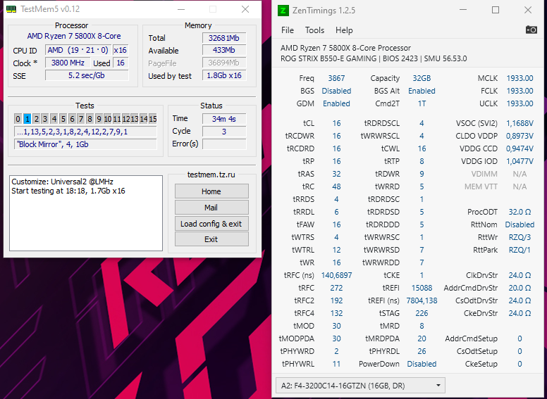 samsuung У вас всего лишь 7 неправильных таймингов, но в их числе и главные. Вы хоть tm5 с конфигом универсал с такими настройками без ошибок проходите?