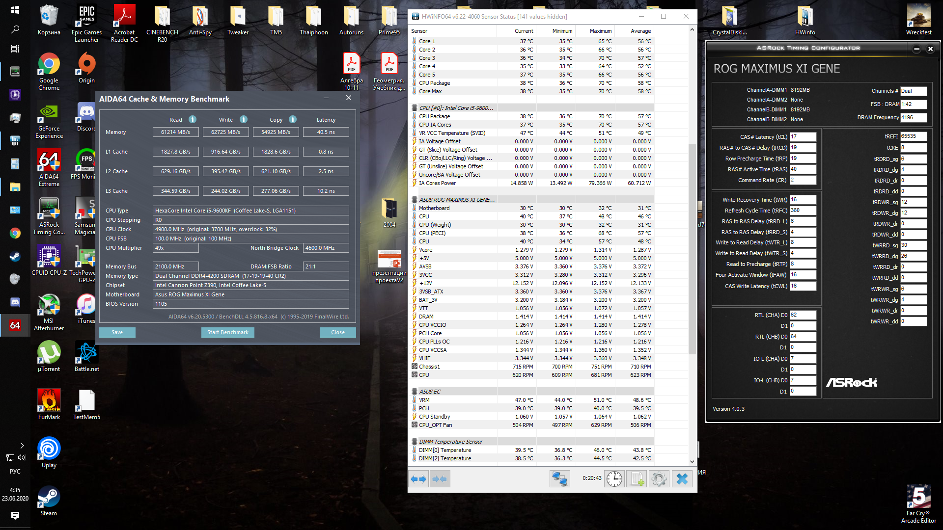 Подскажите, плиз. Поставил оперативку Patriot 4400 MHz 4х8 Гб, чипы б-дай. На 4400, 4200 не пошла. На 4000 идёт с таймингами 17-17-17-38 1T. Но в бенчах результат снизился - например в линХ 0.9.5 со старой оперативкой (3200@15-16-16-36 1Т) было 930-960 Гфлопс, а с новой - 860 Гфлопс. В сайнбенче со старой оперативой было 84хх, а сейчас 83хх. Получается, что от установки новой оперативки на хваленых б-дай чипах производительность снизилась? И как тестировать программой TestMem5??? Она у меня уже при запуске крашится, а если запустить с правами от админа, то крашится в процессе тестирования с формулировкой "TM5 Crash...", но при этом в интерфейсе программы не написано, что обнаружены ошибки в памяти. Оперативка 2 набора 16Gb (2x8Gb) 4400MHz Patriot (PVS416G440C9K).