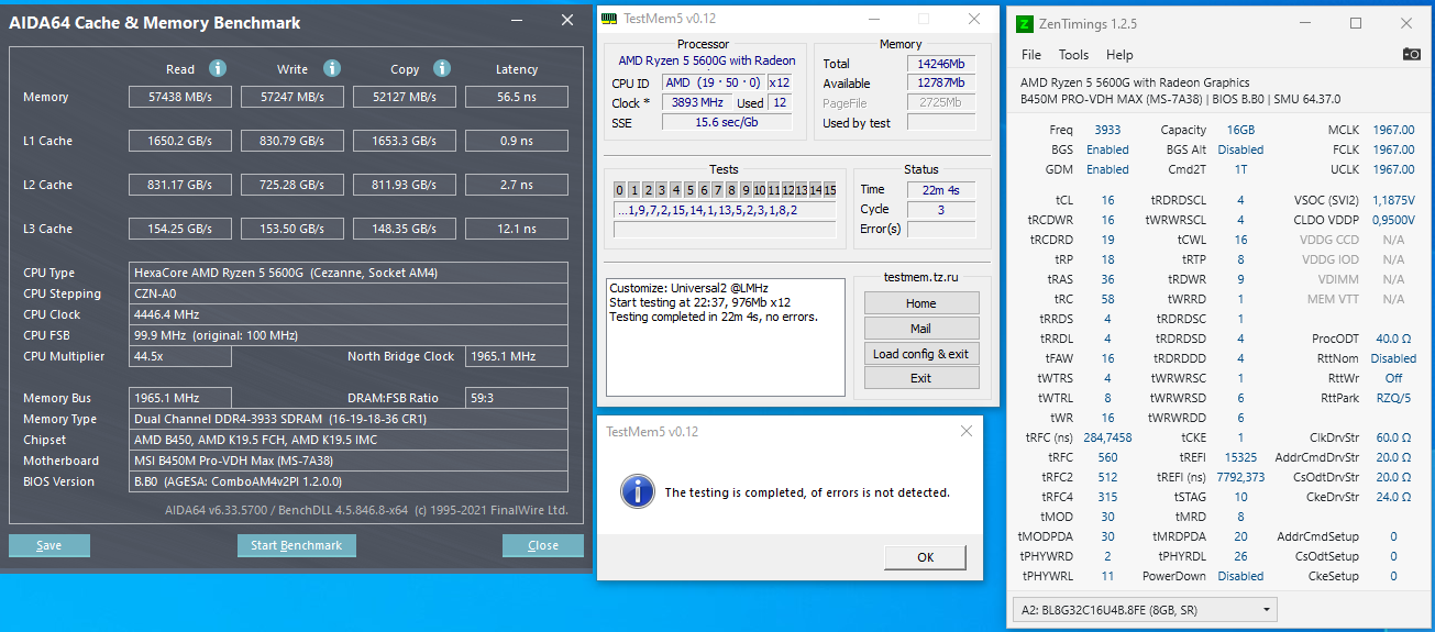 Всё, закончилась битва за 3933Mhz. Для статистики: MSI B450M-VDH MAX Ryzen 5 5600G Crucial BallistiX BL8G32C16U4B, одноранги. Огромный респект камраду artxays за всестороннюю поддержку в этой войне