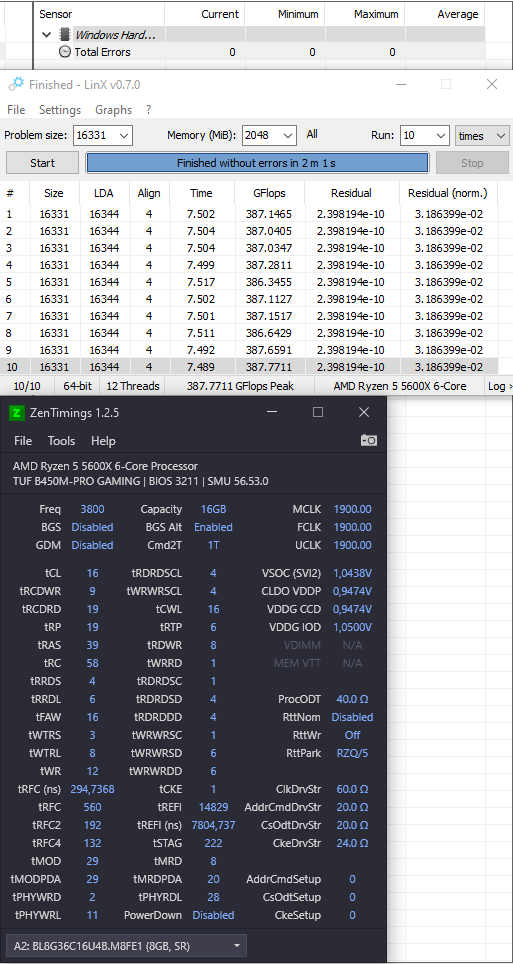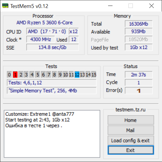 пройди пожалуйста полностью один цикл конфига universal2 с ошибками и пришли мне скриншот на котором будет полностью развернутый на весь экран hwinfo64, zentimings и tm5 с ошибками просто как только перейдёт на второй тест сделай скриншот и останови тест будем искать в чём проблема