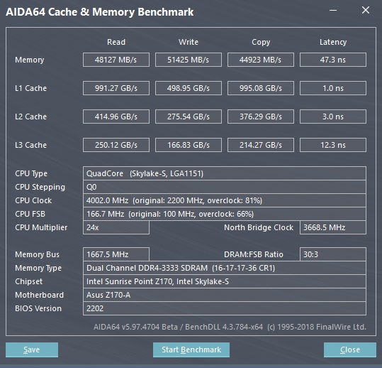 CPU Name: Intel® Core™ i7-7740K CPU @ 4.30GHz Motherboard Model: MSI X299 GAMING PRO CARBON AC (MS-7A95) Total Size: 8192 MB Type: Single Channel (64 bit) DDR4-SDRAM Frequency: 2750 MHz - Ratio 1:31 Timings: 21-31-31-63-2 (tCAS-tRC-tRP-tRAS-tCR) Slot #1 Module: G.Skill 8192 MB (DDR4-2137) - XMP 2.0 - P/N: F4-3200C14-8GVR