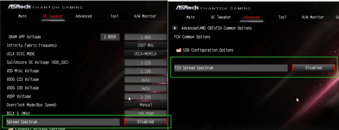 В биосе нашел два параметра в разных местах это "Spread Spectrum" и "FCH Spread Spectrum" - и его тоже надо отключать?