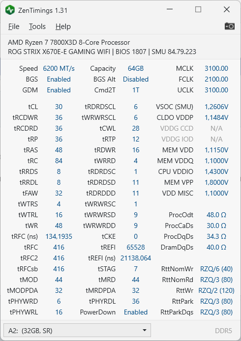 Пока все стабильно. Что еще можно улучшить с 6400? С 6400 1.4 температура чипа доходит до 58 гр., это для меня много, поэтому я выбираю 6000 1.35 до 56 гр.