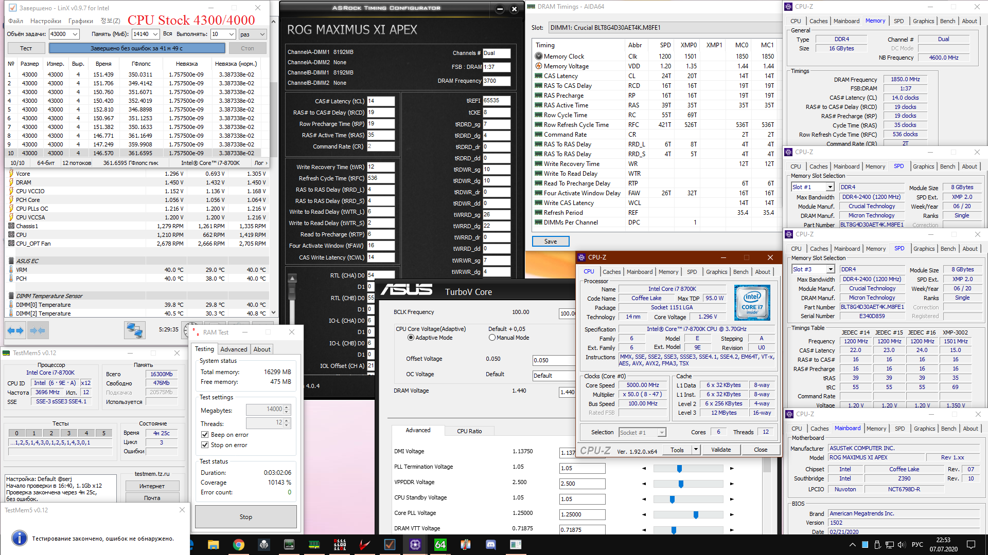 неудачно - тренировка не прошла, wtr_s пережат в хлам RAS по каким формулам ставил? у меня 16 гигов хеви проходит минут за 40(или я конфиг спутал) - а у тебя 70, обычно когда тест идет сильно дольше - значит что-то совсем кривое.