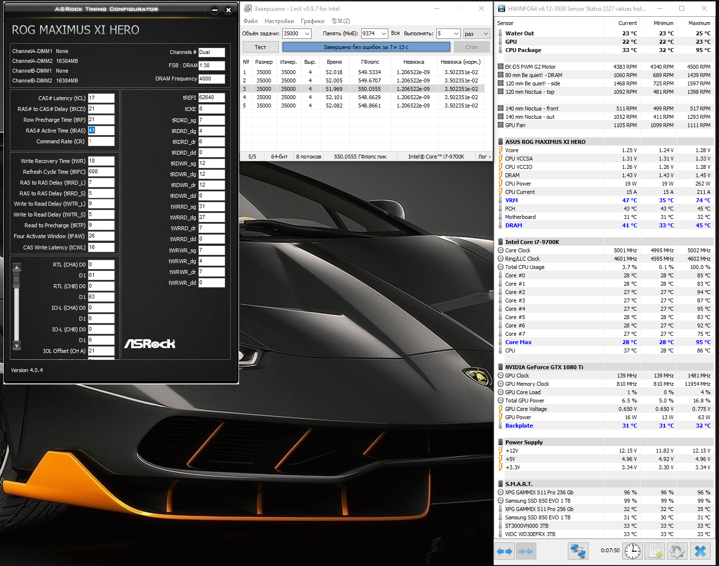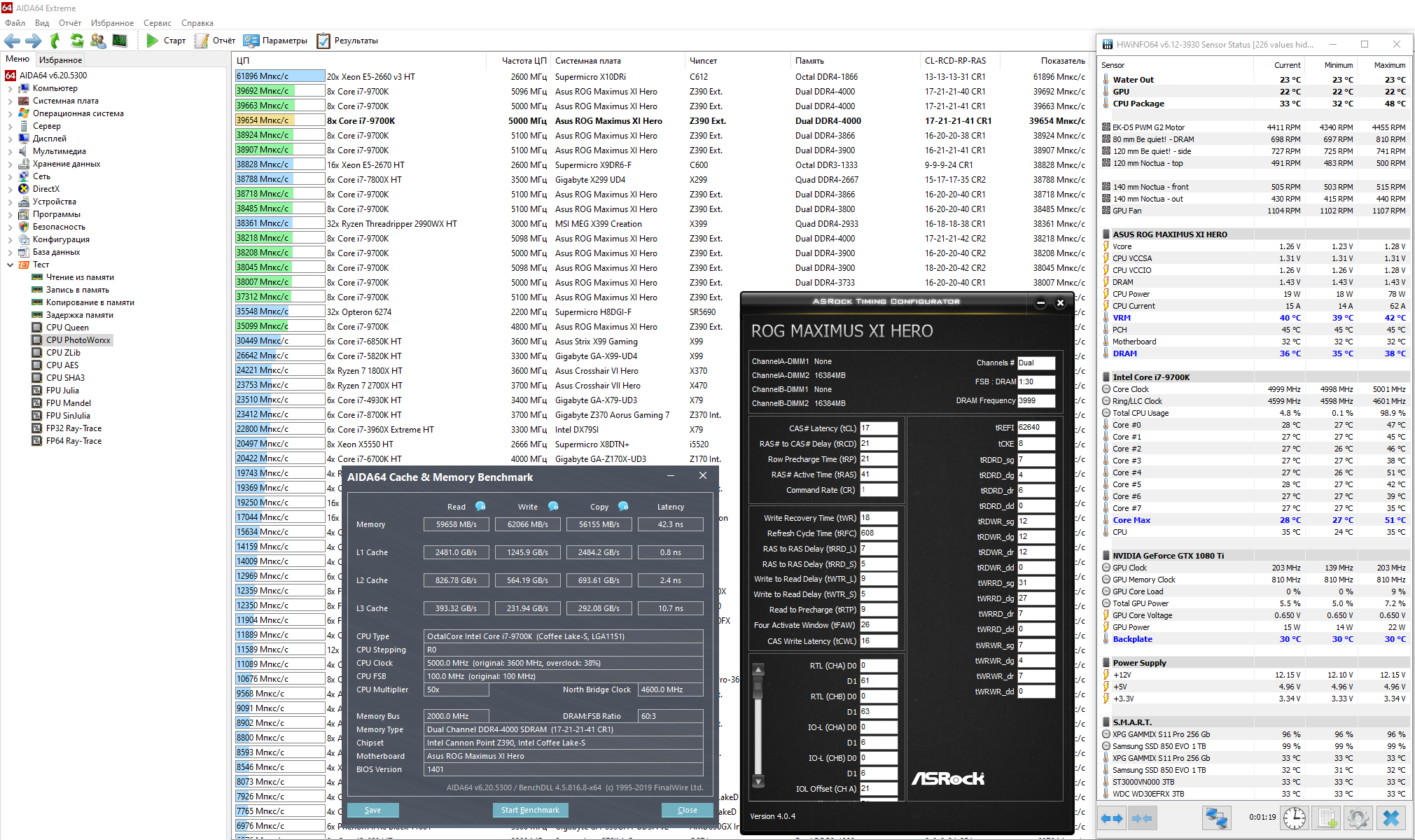 Сначала были ошибки (много), разжал tFAW c 26 до 28 и tRFC c 608 до 616 - всё равно много ошибок. Затем уменьшил tREFI c 62640 до 61200 - ошибки пропали. Скорости практически не изменились по сравнению с 4000 МГц 17-21-21-41 CR1 tFAW 26: