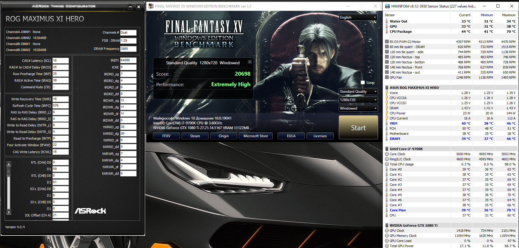 я фф15 гоняю бенчмарк 720п всё на минимум. там в некоторых местах в карту упирается (несмотря на настройки), в большинстве случаев карта недогружена и от разгона память виден просто очень большой прирост, который может от одного неверного тайминга измеряться в сотнях очков и даже в тысячах.