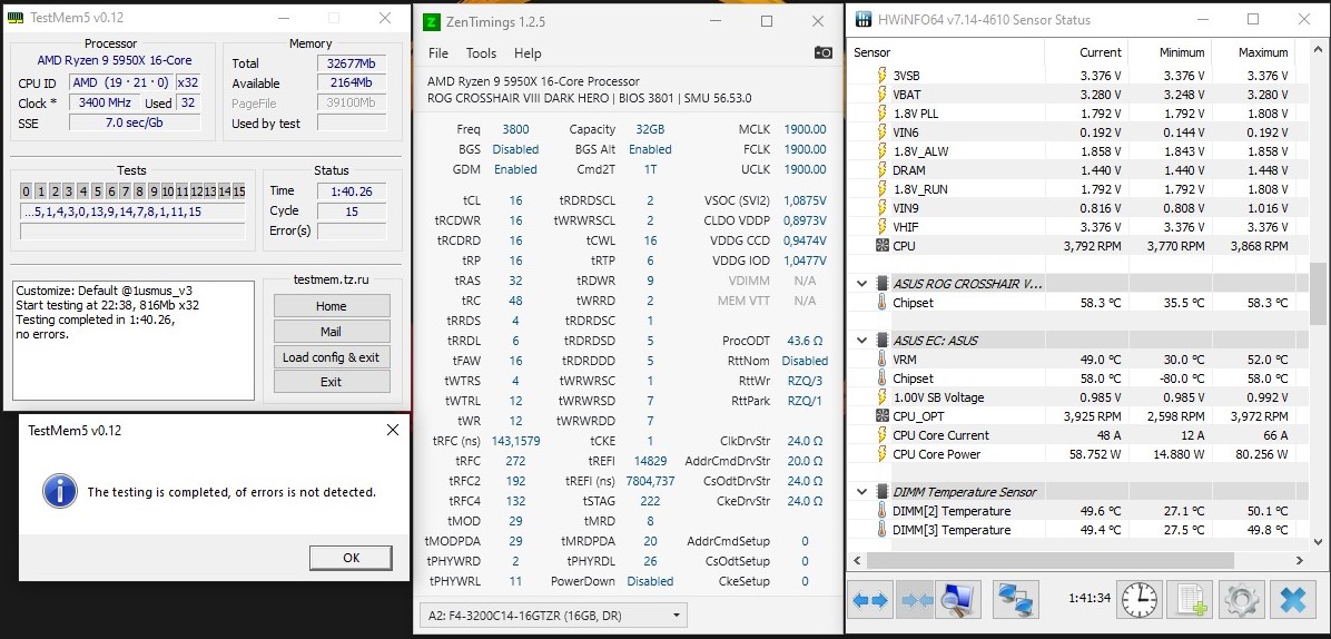 4. Перед настройкой частоты и таймингов рекомендуется установить принудительное охлаждения на модули памяти, особенно для памяти с чипами Samsung B-die, повышение температуры памяти выше 48°, может сопровождаться дополнительными ошибками, не связанными с неправильной настройкой таймингов, что затруднит их поиск и общую настройку памяти.