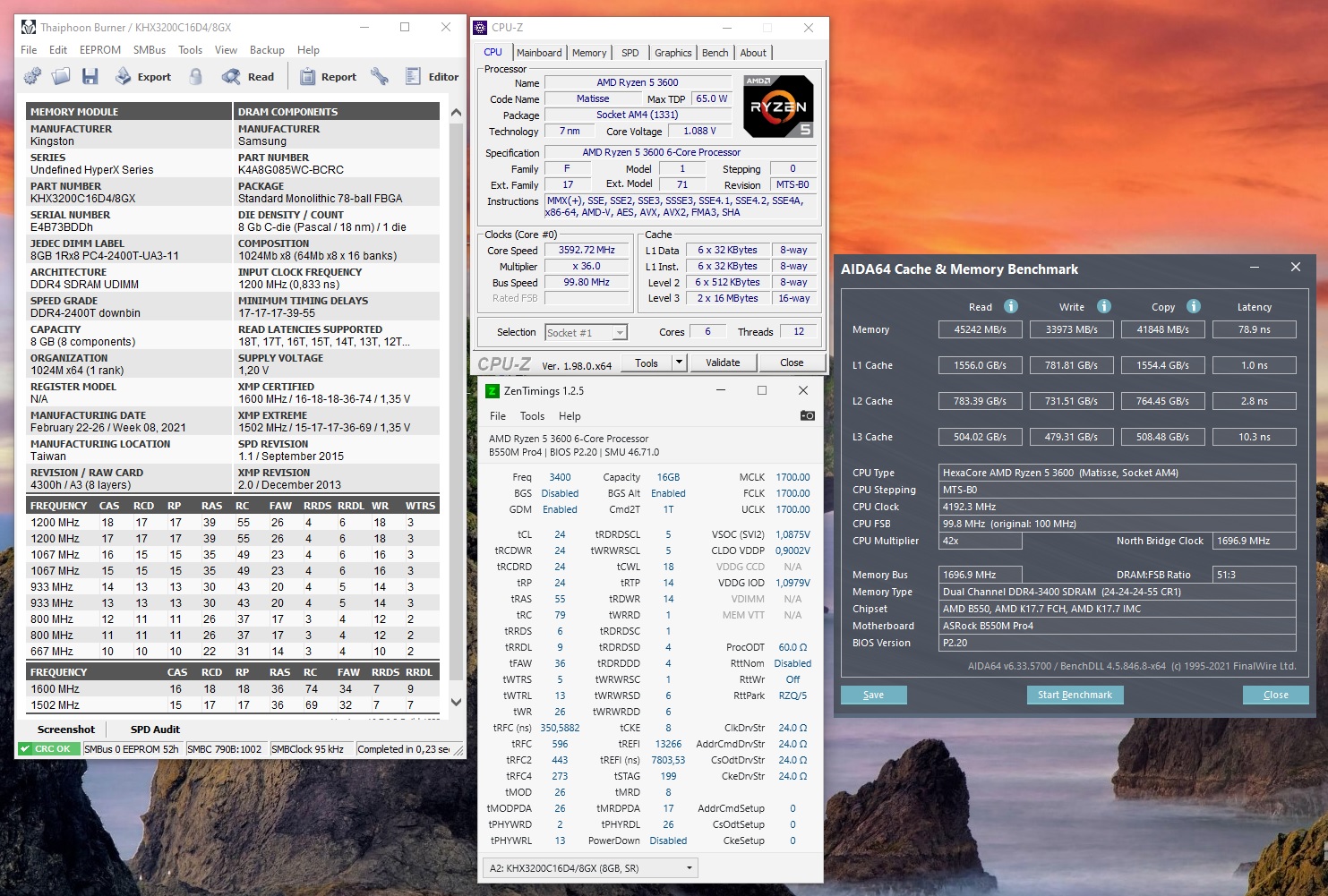 4200 явно не предел для памяти, просто на больших частотах на встроенной видеокарте перезагружается компьютер при VSOC 1.25 А теперь самое смешное. Это те самые двухранговые баллистики BL2K16G32C16U4RL, которые на моей Asrock Z390 Extreme 4 на 3733 тренировались через раз (тайминги нормальные) и вообще не стартовали выше 3800. Это те же самые баллистики, что в моем горячо любимом Define R5 разогревались до 60+ градусов при 1.33В (правда с trefi 65024). Кажется, начинаю понимать откуда взялась такая народная любовь к баллистикам.