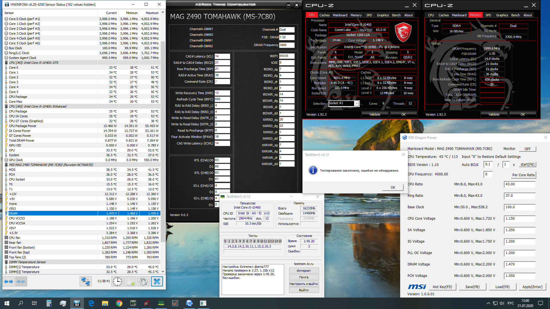 Вот эт не правильная информация. Однако бытует мнение (которое пытаюсь уже месяц уточнить), что на кометах чуть сдвинут порог безопасных SA/IO. Про автоматические режимы я вообще молчу: MSI для 4600 МГц ставит 1.6/1.65 В, ASUS - 1.5/1.6 В. Я уже не вижу ничего плохого в 1.4/1.45 В на постоянку для IO/SA.