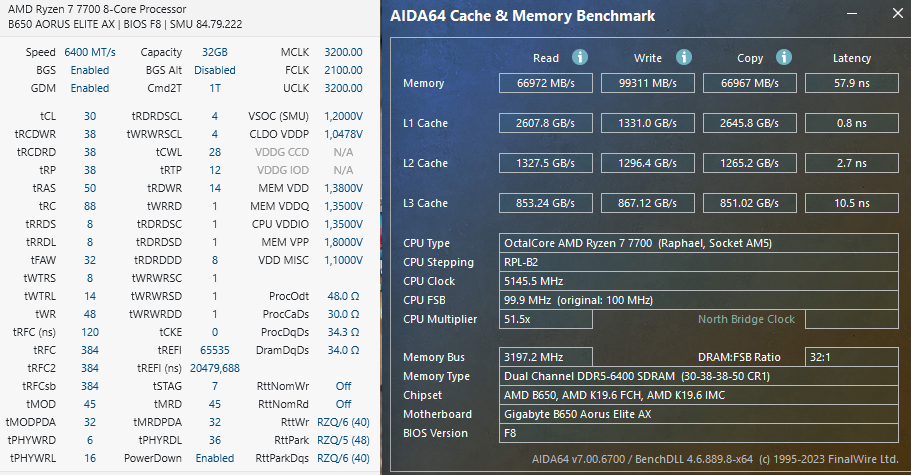 Не получилось избавиться от ошибок на 6600, очевидно нужен soc выше 1.3в. Пошел по другому пути, попробовал 1:2 8000, здесь как оказалось, все сильно проще. Soc надо всего 1.2в, что даже меньше, чем у варианта 1:1 6400-2200. Память завелась и стабильна на тех же вторичках что у 6400, нужно было поднять только первички и tRFC. По итогу имеем те же цифры в аиде, что у 6600