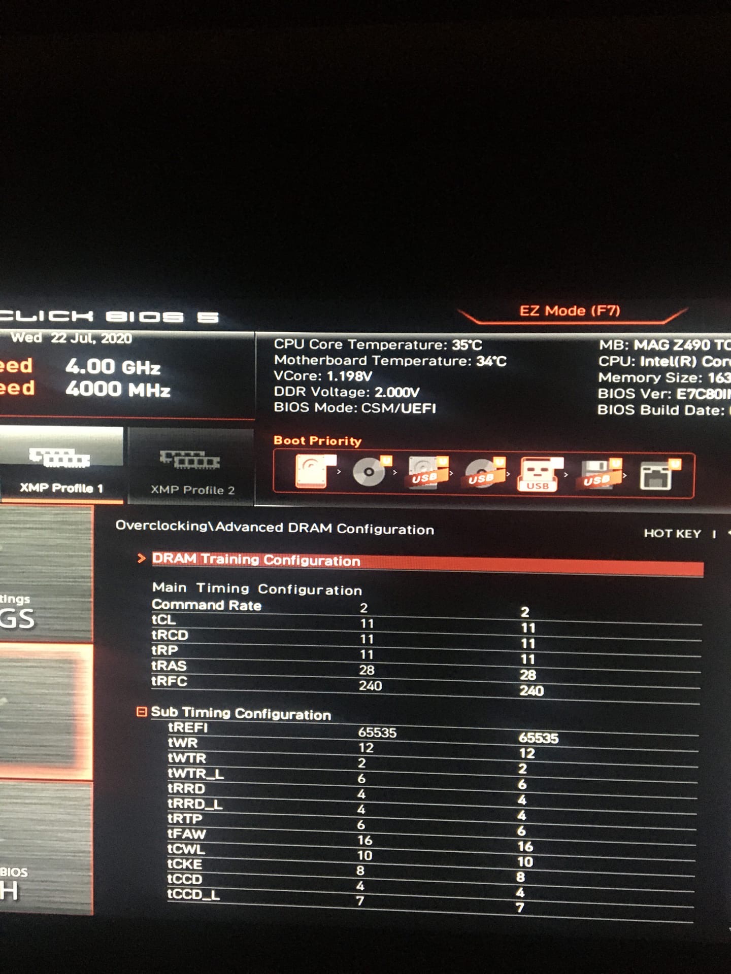Необъятные значения получились. 4000 12-11 или 12-12 это минимум, который может запуститься на Intel 1151++++ точно. 4000 11-11 нет запуска, как и с 2911 11-11 (выводил стабильные, 2933CL10 - нет запуска вообще). Специфика памяти. Попросил комрада сделать на Z390 MSI 4000 13-15-2T также (он запустил только с 1.65V):