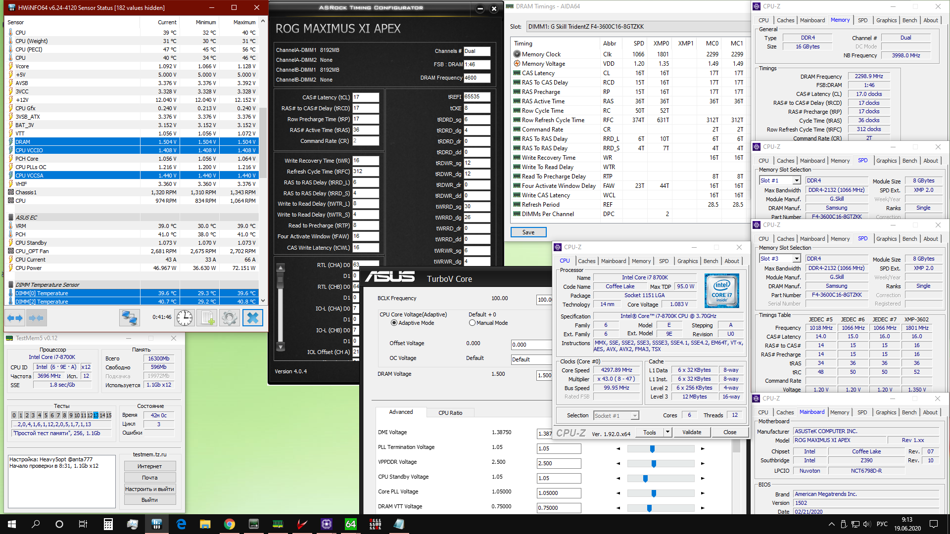 Процессор и память во всех случаях одинаковы (кроме APEX XI, это как раз скриншот Саши). С другой стороны, у меня ADATA и T-Force по разному тренятся вообще. Но вот касаемо Z490 я ранее уже задавался вопросом: может быть из-за такой разницы в RTL и происходит стабильная работа на MSI/Aorus и крах на ASUS? И в принципе - нормально ли то, что тренинг на 4слотовом экстриме и 2слотовом апекс одинаков? В глаза долблюсь уже, всё ок