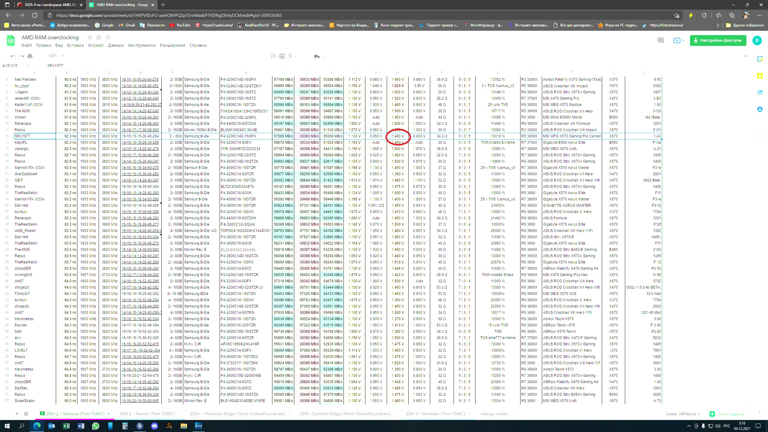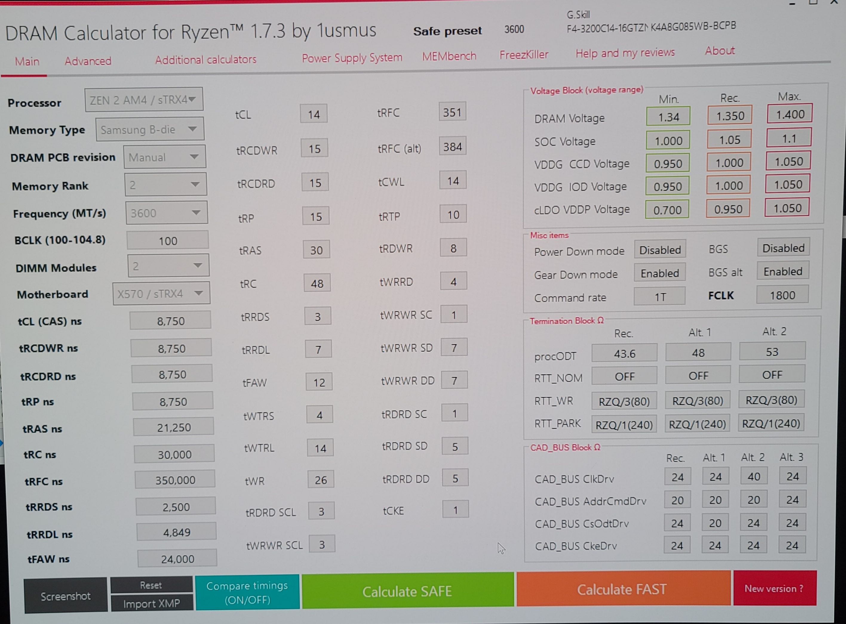 SRV1977 я имею ввиду в плане разгона, все равно все упрется в шину, разница будет лишь в том, сможет ли комплект в tRCDRD 14 или нет на частоте 3800, tRFC +-10 так же роли не сыграет, любой комплект F3200-C14 сможет в частоты и максимально низкий Cl. Другое дело чипы, для F4-4000C14D С15. У тебя какое напряжение на память на скрине?