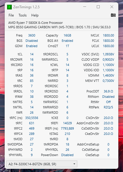 DRAGON22i почему 3600 частота, FCLK1900 не едет? Читай шапку, внимательно и смотри результаты, в CL14 на твоем текущем напряжении, память просто не может. Если нет обдува, принудительного на память, забудь о CL14. Скрин делай по образцу ZT+MT5, в след раз снесу подобный пост твой.