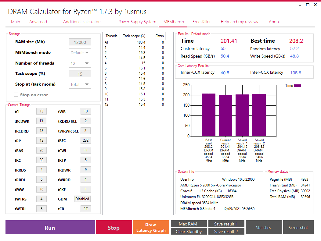 Сижу на таком конфиге, всё стабильно. Может подскажите где накосячил может? Латенси 60. Плашки балистиксы 4 штуки с ХМР 3600. Есть ли зависимость между TRC и TRFC? Ну типа если выставляешь tRC 58, то tRFC около 580 ставить?