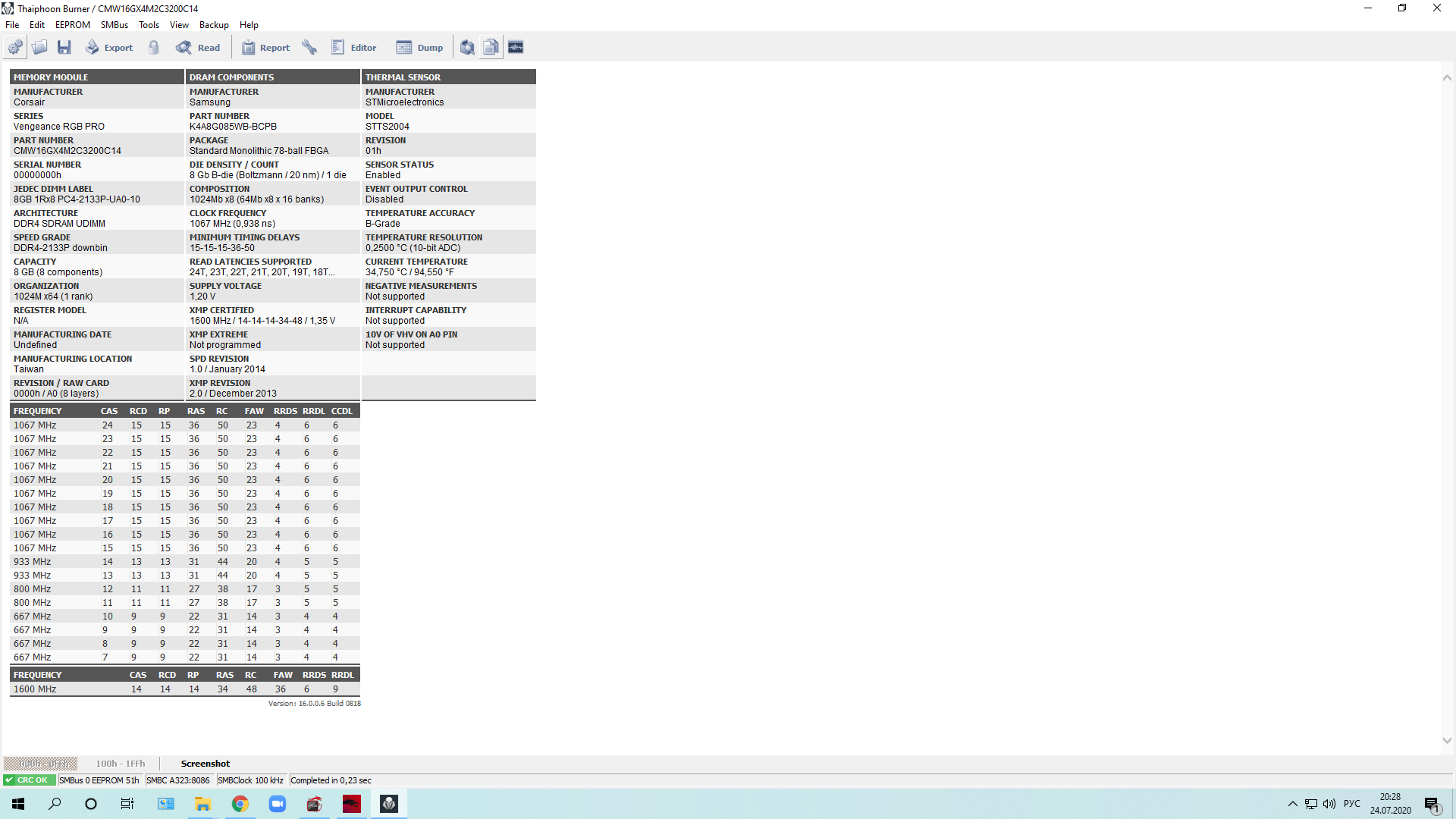 [img]Ссылка на скрин[/img] Для сбора статистики по установленным чипам памяти просьба прикладывать скрины программы Taiphoon Burner и указывать напряжения на DIMM, IO и SA![/color]