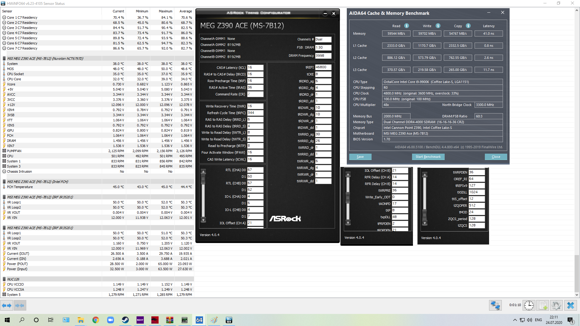 3866 через раз бутится с CL16, но тестировать в системе смысла не вижу, тк все еще не понимаю, откуда такая дикая нестабильность. Но это уже победа, те же AES на 3866 я запустить не смог вообще, а 3733 они не держали никак. Где я мог что-то упустить, куда копать? Кит памяти рабочий заведомо, гонял 4000@15 на z390 с тем же процом и брал 4133@17.